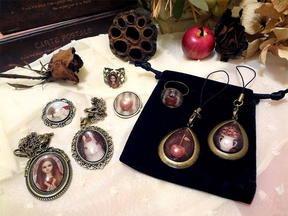 金属×ガラス×紐×チェーン×イラスト